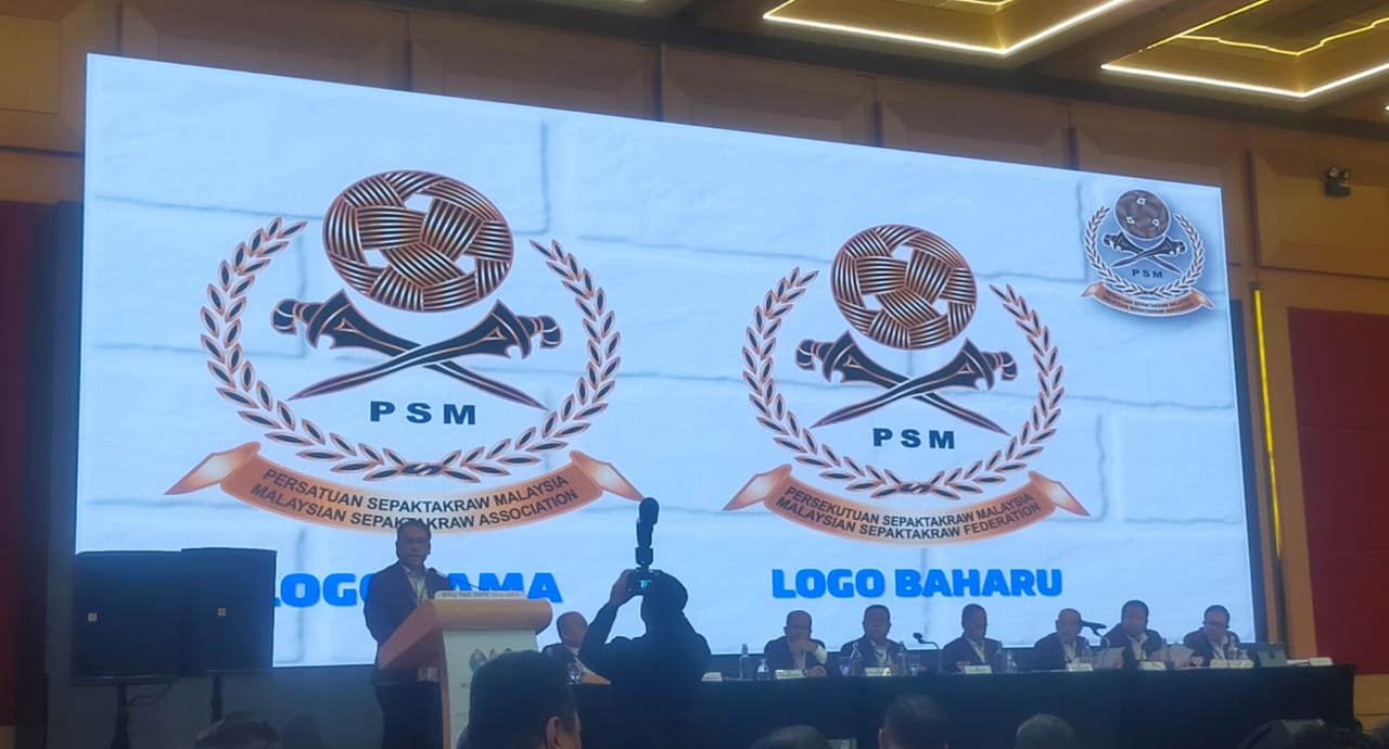 GAMBAR logo atau lambang lama (kiri) dengan nama Persatuan Sepak Takraw Malaysia (PSM) dengan yang baharu dipinda dalam EGM 29 Jun 2025, Persekutuan Sepak Takraw Malaysia (PSM).