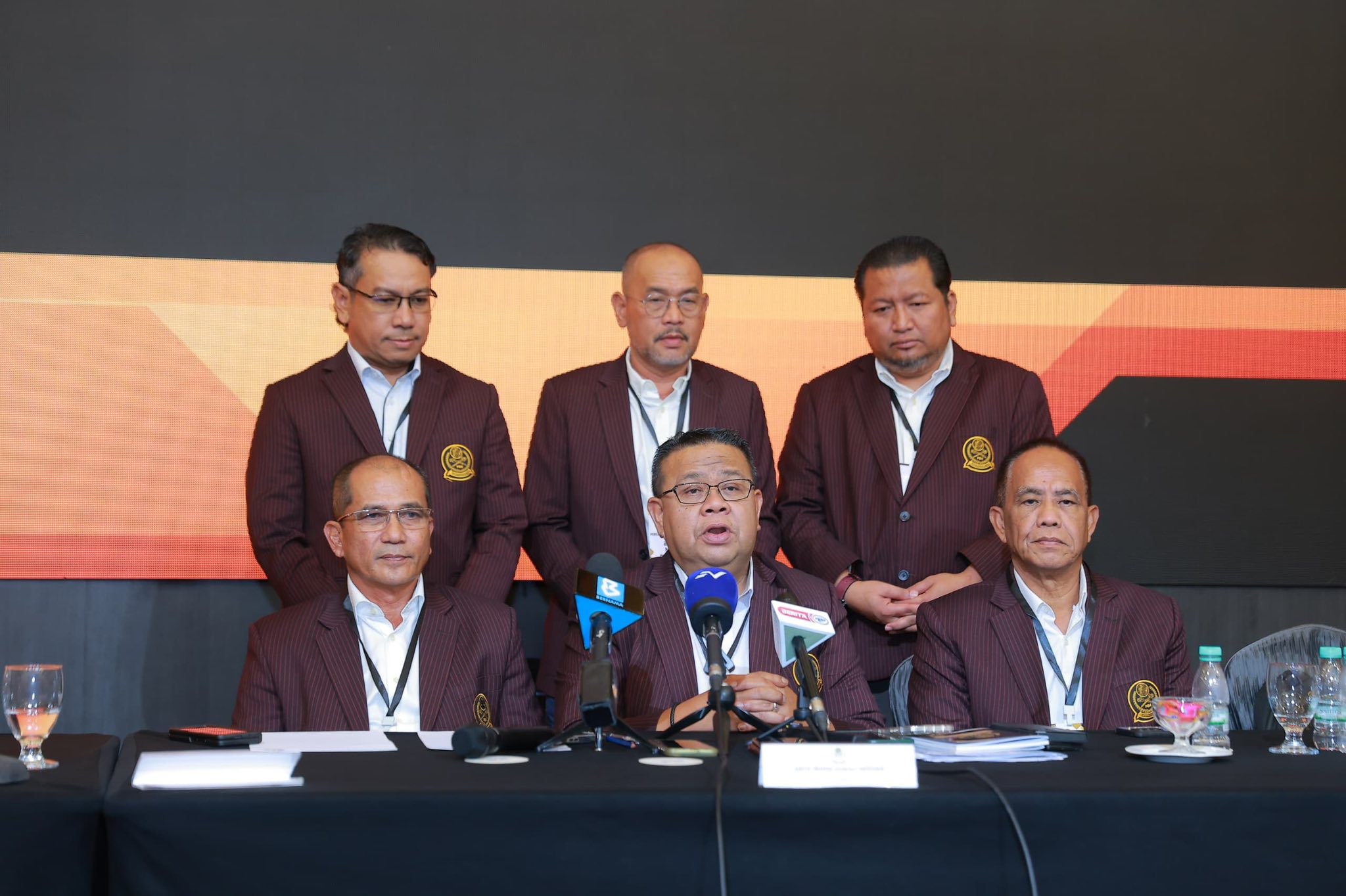 MOHD. Sumali Reduan (depan, tengah) menjawab soalan dalam sidang media selepas AGM pemilihan PSM 2025-2028 di WTC, Kuala Lumpur sambil diapit Abdul Halim Suleiman (kiri) dan Abdul Puhat Mat Nayan. Belakang (kiri ke kanan), Tengku Zaihan Che Ku Abd. Rahman, Abu Jimi Samat dan Wan Husni Abdullah. - Kredit foto: PSM