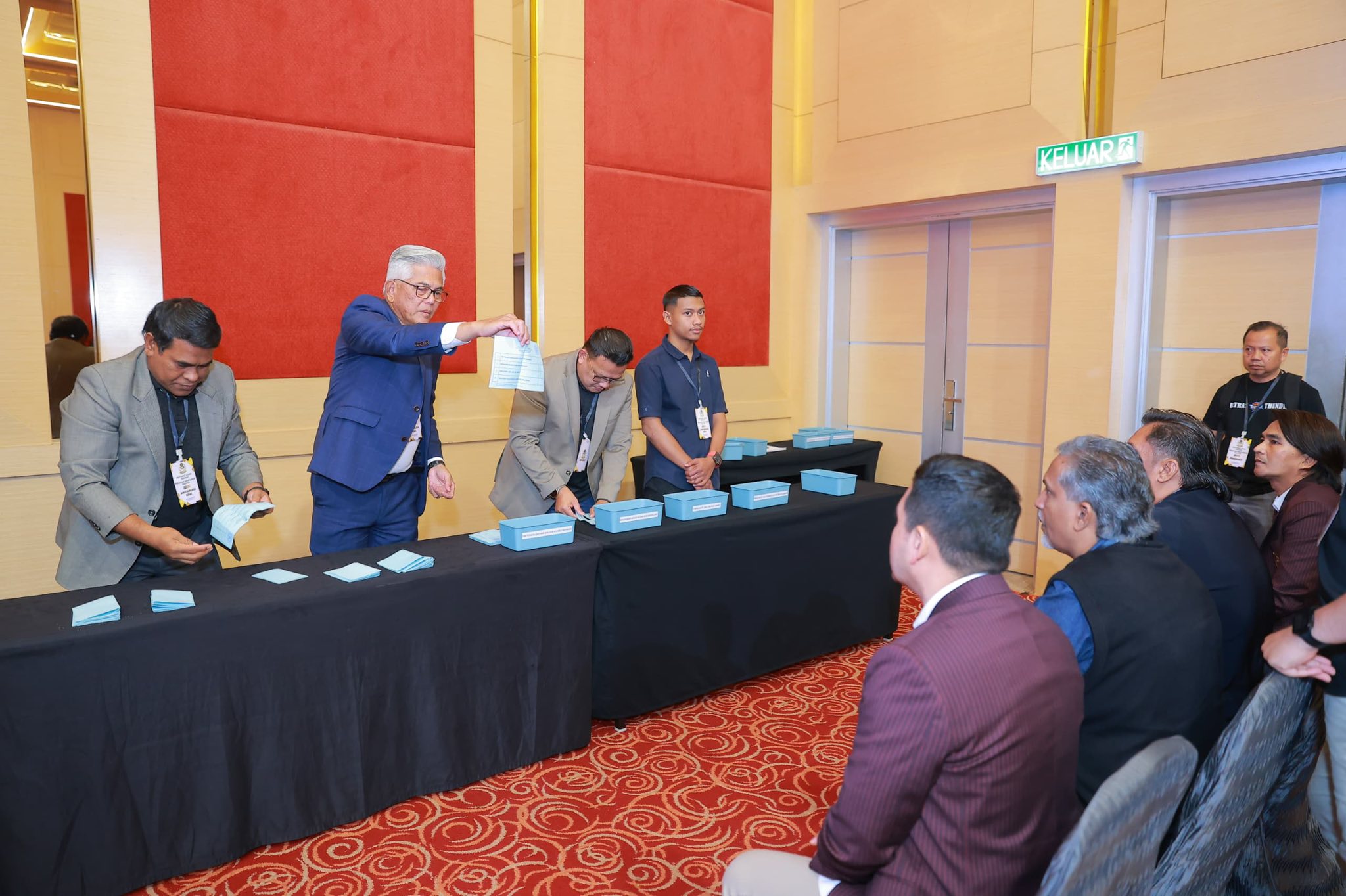 SEORANG pegawai PSM menayangkan kertas undi kepada para pemerhati bebas dalam proses pengiraan dan pemarkahan selepas AGM pemilihan pucuk pimpinan penggal 2025-2028 di WTC, Kuala Lumpur. - Kredit foto: PSM