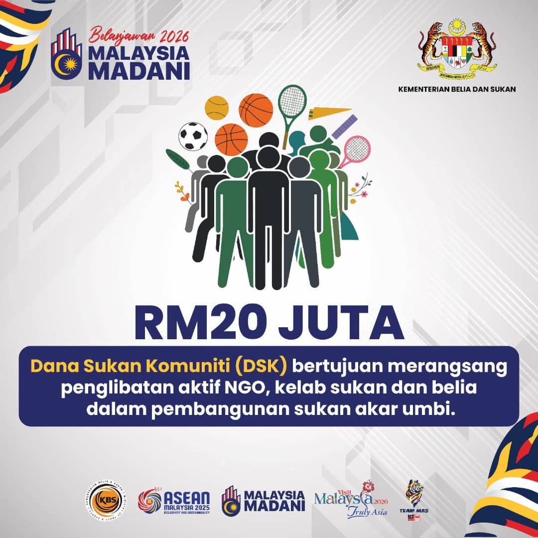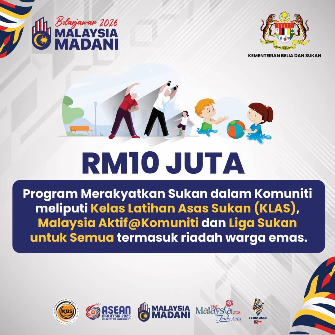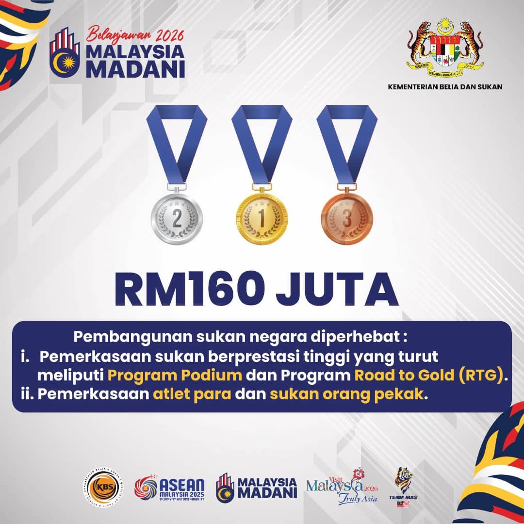 “Seyogia, pembangunan sukan negara terus diperhebat dengan peruntukan lebih besar berjumlah lebih RM580 juta,” katanya ketika membentang Belanjawan 2026 di Parlimen pada Jumaat 10 Oktober.