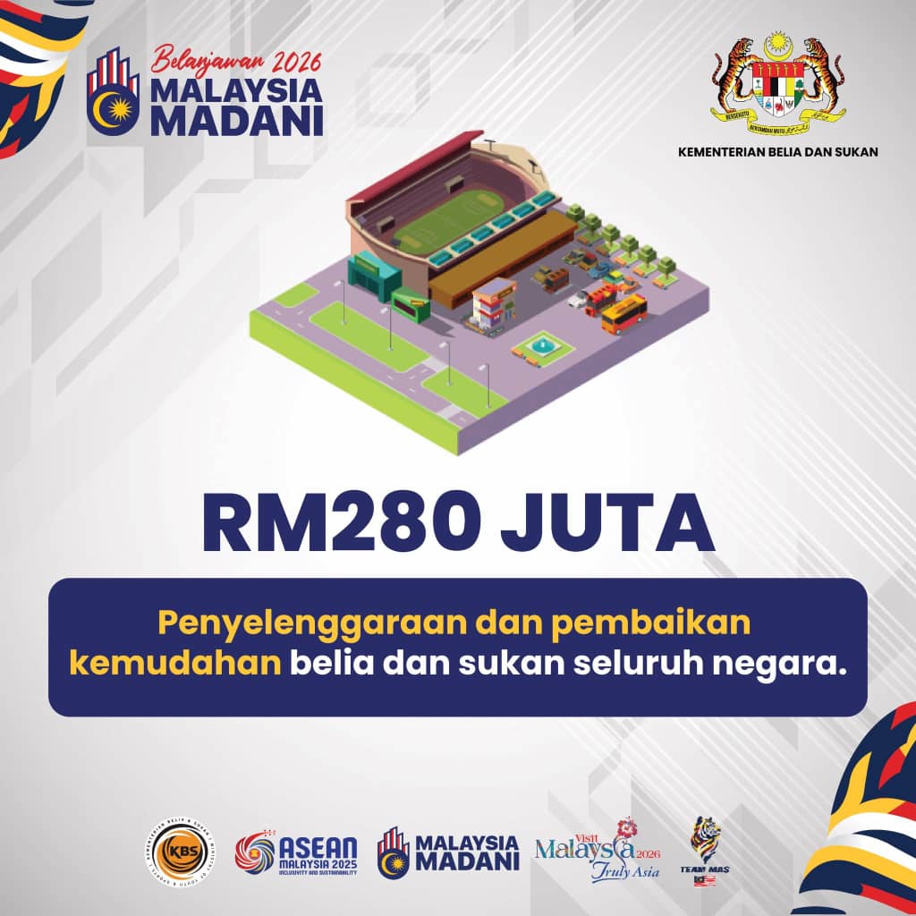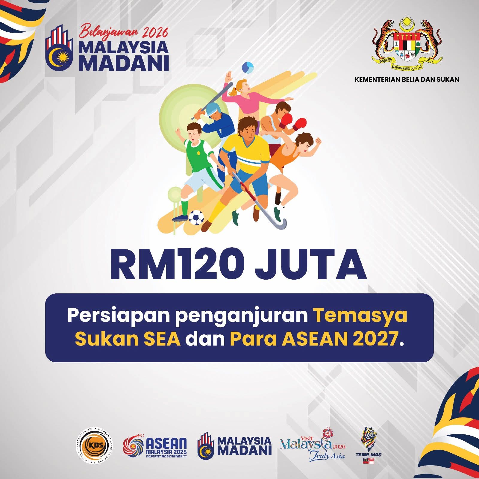 Bajet tersebut juga sebahagian daripada persediaan negara menjadi tuan rumah Sukan SEA ke-34 dan Sukan Para ASEAN ke-15 pada 2027.