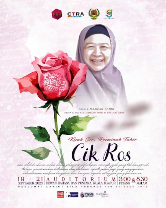 PERJUANGAN lebih empat dekad tokoh seni persembahan tersohor tanah air, Dr Rosminah Mohd. Tahir akan dipentaskan dengan judul Cik Ros pada 19-21 September 2025 ini di Auditorium Dewan Bahasa dan Pustaka (DBP), Kuala Lumpur.