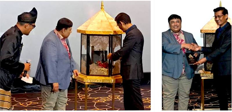 Majlis pelancaran buku skrip 'Srikandi' diserahkan kepada Suhaimi Sulaiman oleh Abang Haliman Abang Julai (kanan sekali).