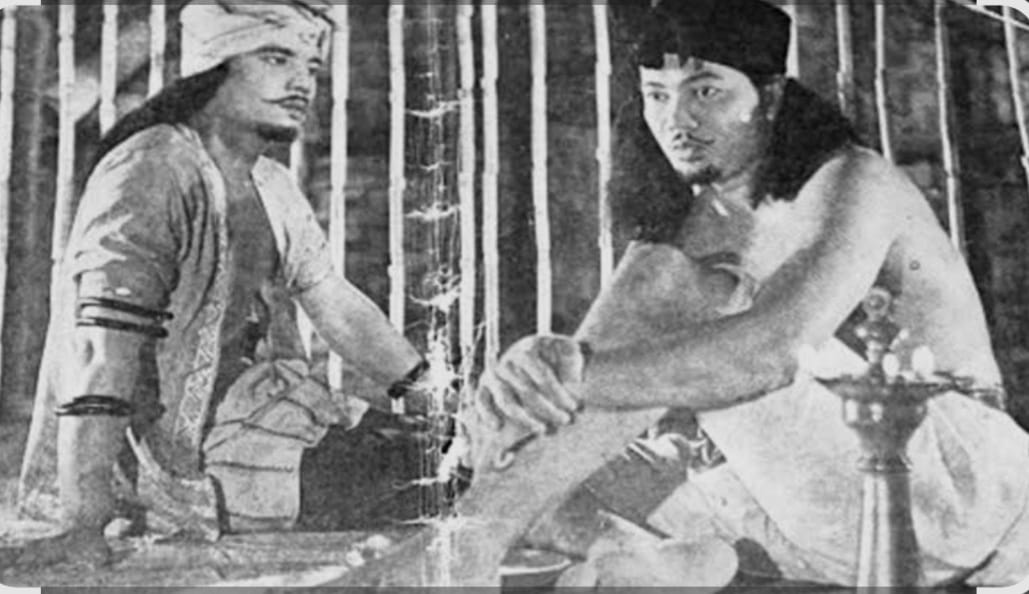 P. Ramlee (kanan) sebagai Aduka dalam satu adegan 'Semerah Padi' bersama Nordin Ahmad yang memegang watak Taruna.