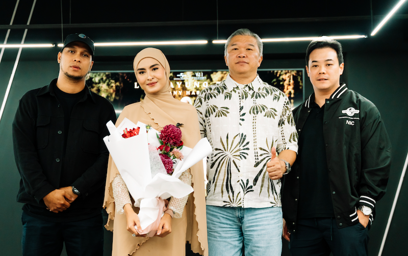 Wany Hasrita bersama Pengurusnya, Ash (kiri) dan Hermond Cheng (dua dari kanan) serta Nicholas Ling selaku Pengarah Kewangan & Operasi Universal Music Malaysia.