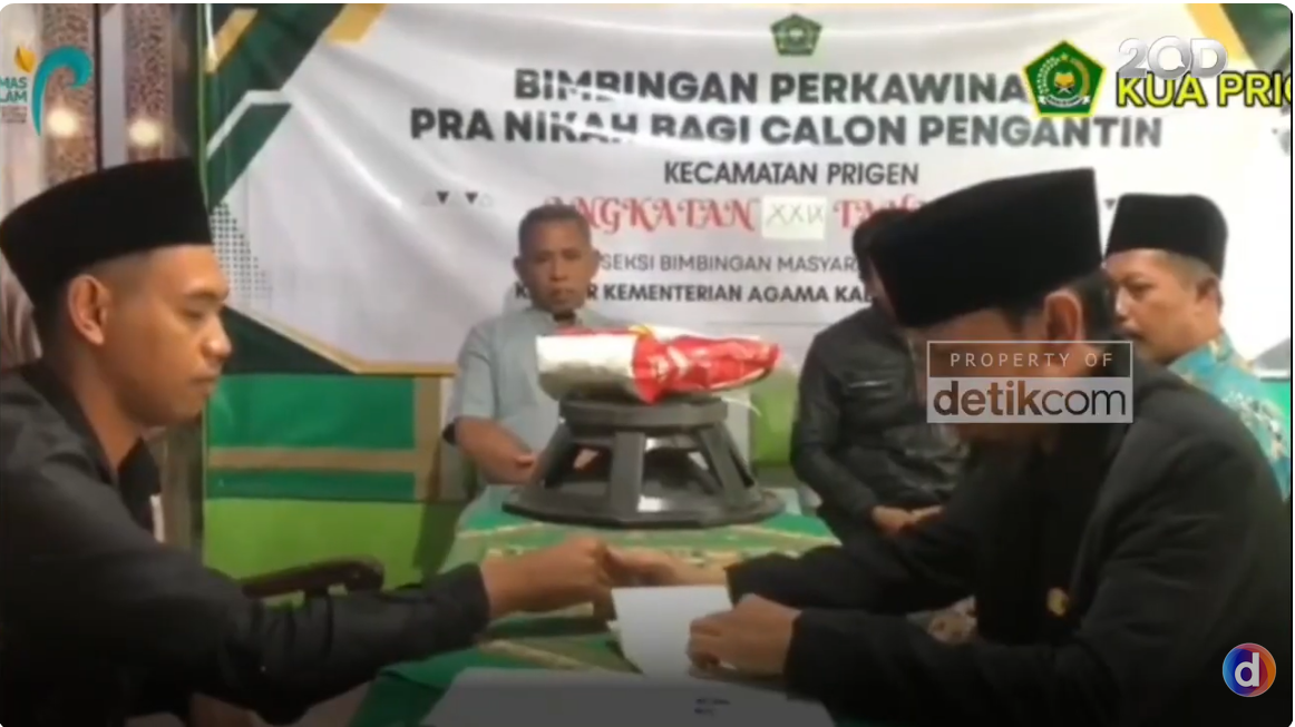 Majlis akad nikah yang berlangsung pada 7 November 2025 di Kantor Urusan Agama (pejabat agama) atau KUA Prigen ini menimbulkan kejutan kepada para hadirin dan tular setelah video yang dirakam oleh Instagram @kua_prigen dan dimuat naik beberapa media sosial lain.