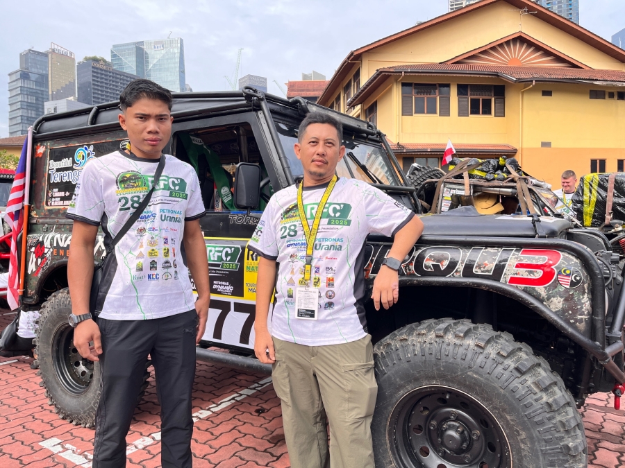 Pasukan GG 4x4 dari Terengganu yang dipacu oleh Tengku Khairul A Rahman (kanan) bersama juruarah Muhamad Nasrul Aiman Mohd Azili mempertaruhkan jentera lumba Land Rover Defender Series 3 88 untuk berentap selama 10 hari perlumbaan lasak Rainforest Challenge (RFC) Grand Final 2025 dari 29 November sehingga 10 Disember 2025 nanti.