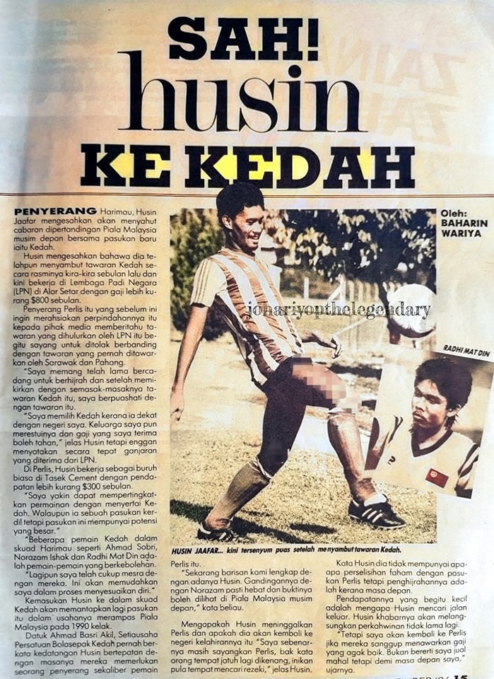LAPORAN majalah Arena Bolasepak mengenai penghijrahan Husin ke Kedah.
