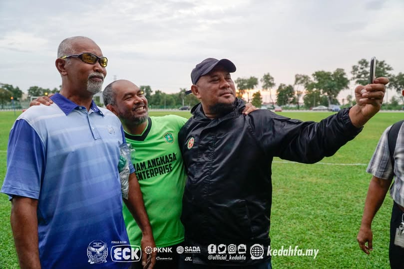 HUBUNGAN Husin (kanan) bersama Faridzuan (tengah) dan Ahmad Sobri (kiri) kekal akrab selepas bersara daripada bola sepak. - Kredit foto: KFA.