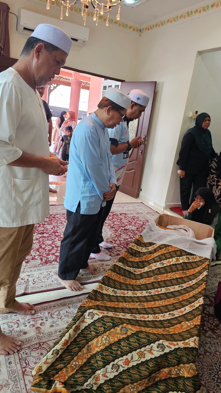 BEKAS rakan sepasukan, Radhi Mat Din (kanan sekali) menziarahi jenazah Husin. Kredit foto FB Radhi Mat Din.