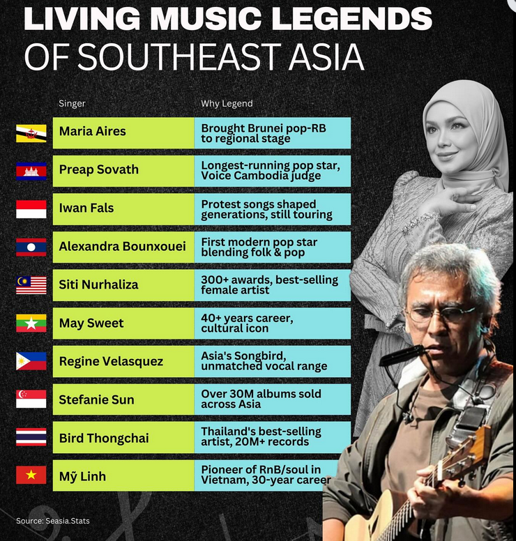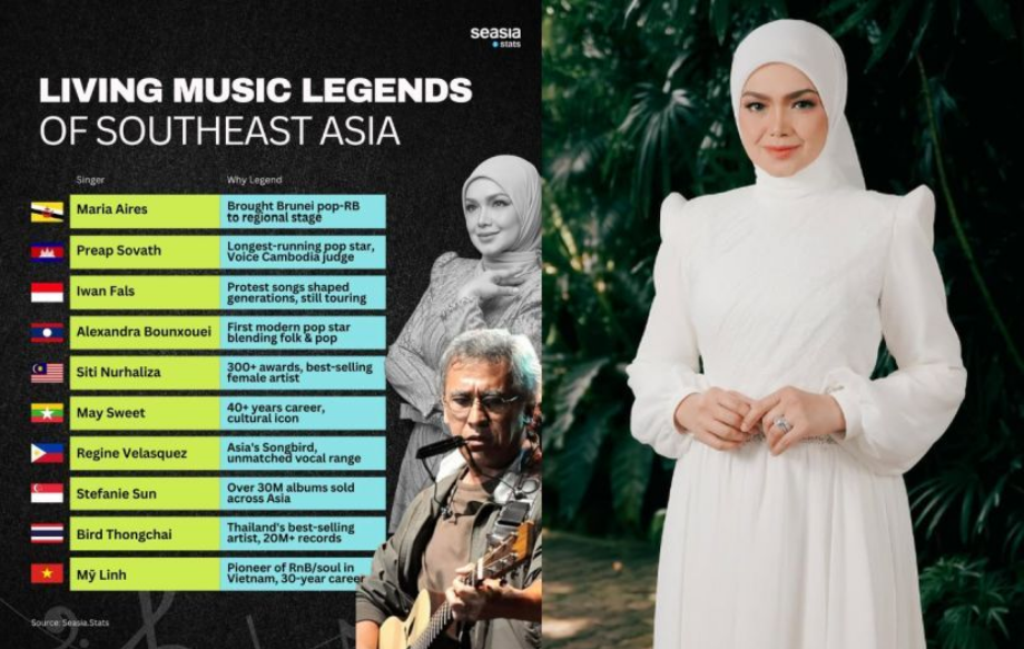 Dalam usia 46 tahun, penghibur tersohor ini telah diiktiraf agensi media antarabangsa SeaAsia Stats sebagai antara Legenda Muzik Asia Tenggara selepas meraih lebih 300 anugerah sepanjang lebih dua dekad bergelar anak seni.