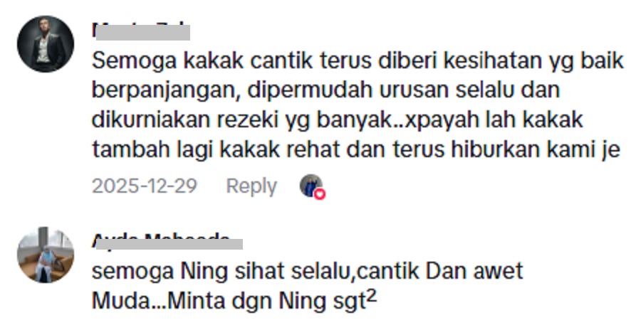 Selain perkongsian pengalaman dan persoalan kesihatan, ramai netizen turut mendoakan kesejahteraan Ning.