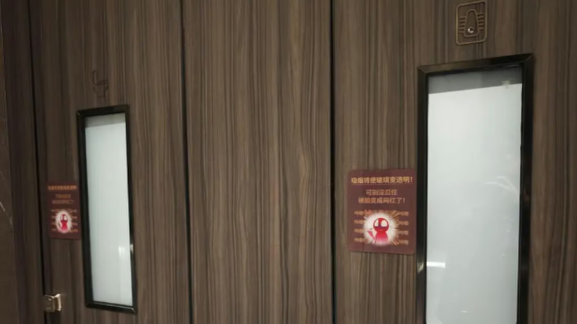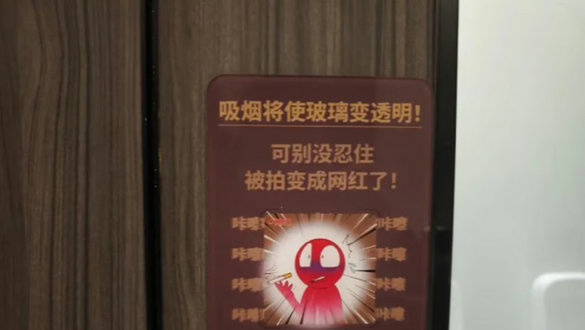Dua pusat beli-belah terkenal di Shenzen iaitu Shuibei International Centre dan Shuibei Jinzuo Building memperkenal teknologi inovatif di mana pintu tandas lelaki bertukar menjadi lutsinar apabila ia mengesan asap rokok.