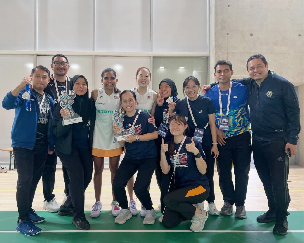 Pasukan sokongan termasuk pegawai dari Institut Sukan Negara (ISN) yang menjadi wira tidak didendang buat skuad badminton negara di Paris. - Kredit foto: FB Pearly Tan