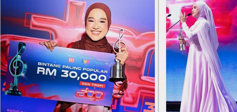 "Disebabkan jam dan sangkut dekat lampu isyarat saya terpaksa turun dan berlari ke lokasi acara dan tak sangka dapat menang Bintang Paling Popular," ceritanya.
