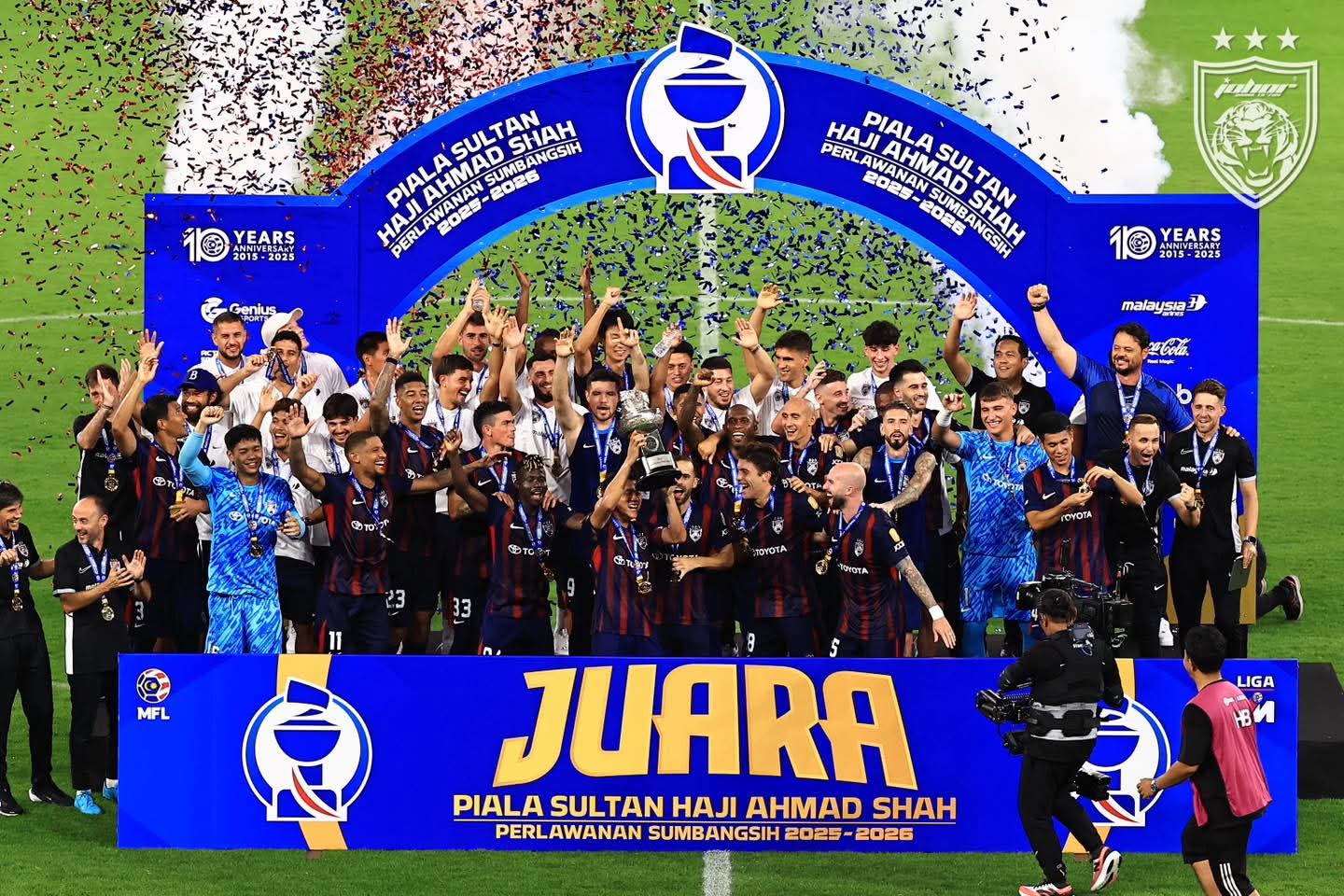 JOHOR Darul Ta'zim (JDT) FC membuktikan statusnya sebagai jagoan Liga Malaysia (Liga M) apabila merangkul Piala Sultani Ahmah Shah (Piala Sumbangsih) 2025-2026 buat kali ke-10 di laman sendiri pada Jumaat 8 Ogos 2025.