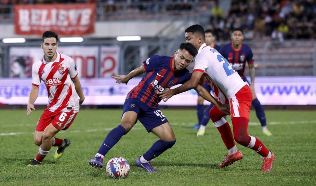 Kelincahan Arif Aiman menyukarkan pemain KL City ketika pertembungan kedua-dua paasukan dalam saingan Liga Super. - Kredit foto: Utusan Burneo.