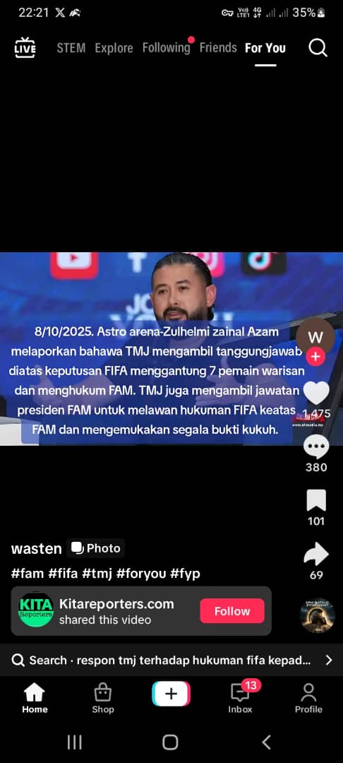 Malah baginda yang juga pemangku Sultan Johor dan pemilik Johor Darul Ta'zim (JDT) turut dilaporkan akan mengambil alih jawatan presiden FAM untuk melawan hukuman FIFA dan mengukuhkan segala bukti kukuh.