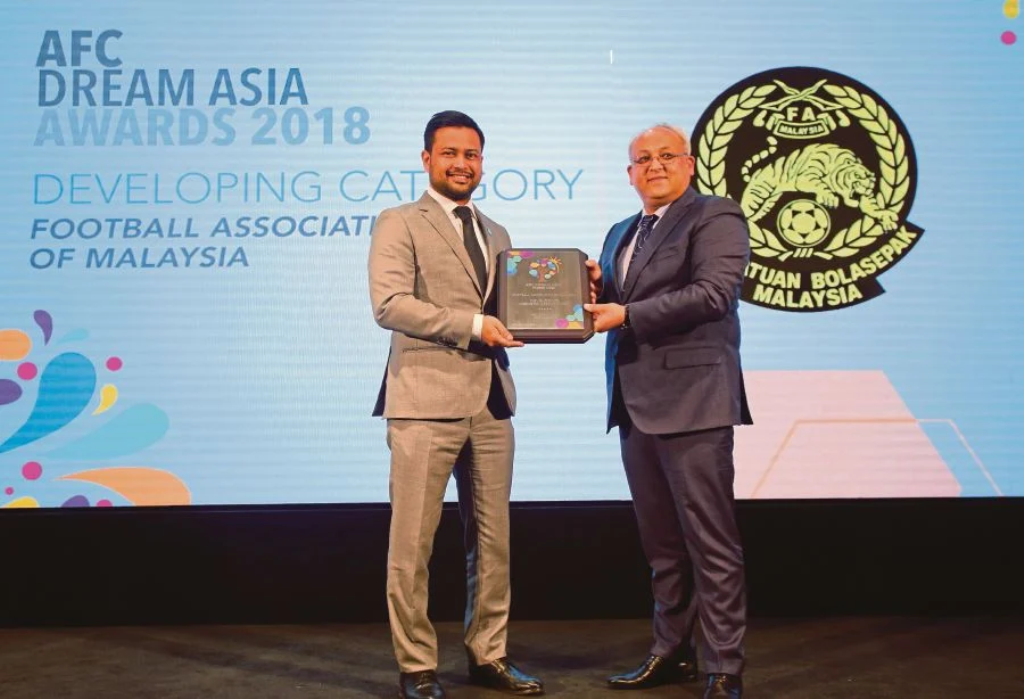 FA Malaysia (FAM) pernah memenangi anugerah Dream Asia Konfederasi Bola Sepak Asia (AFC) 2018 bagi kategori pembangunan di rumah AFC pada tahun 2018.-Kredit foto : Business Times.