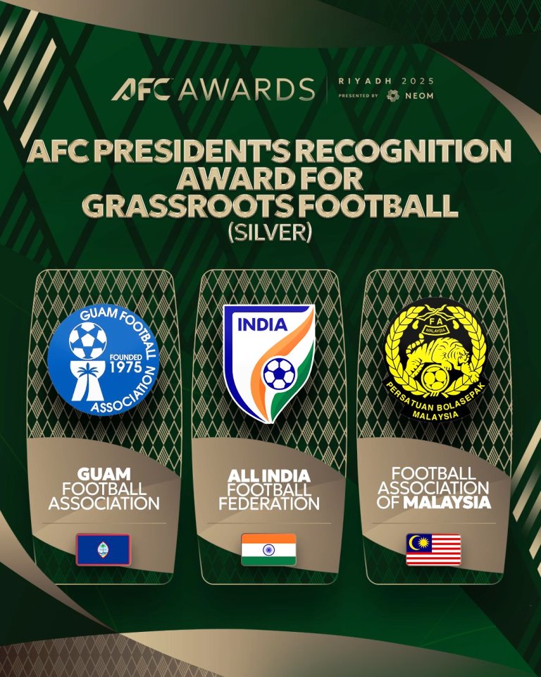 FAM akan bersaing dengan Persatuan Bola Sepak Guam (GFA) dan Persekutuan Bola Sepak Seluruh India (AIFF) untuk merebut Anugerah Pengiktirafan Presiden Konfederasi Bola Sepak Asia (AFC) bagi kategori Bola Sepak Akar Umbi (Kategori Perak) pada AFC Awards Riyadh 2025.