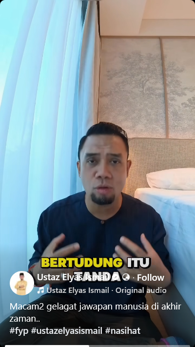 Video teguran Ustaz Elyas itu dimuat dalam laman sosial seperti Facebook dan Instagramnya.