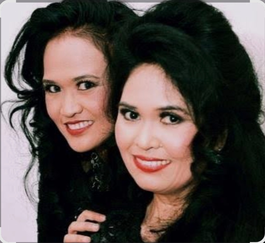Liza (kiri) dan Azlina Aziz, penyanyi popular anak pasangan Aziz Jaafar dan Normadiah.