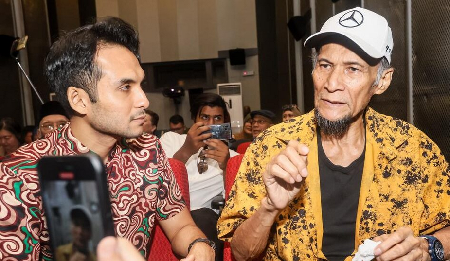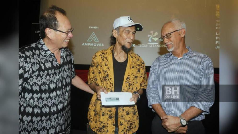 Dharma Harun Al-Rashid menerima sumbangan peribadi daripada produser Richard Ung, Turut serta Pengarah AMP Move, Datuk Syed Azlan Syed Ibrahim. - Kredit foto BH Online