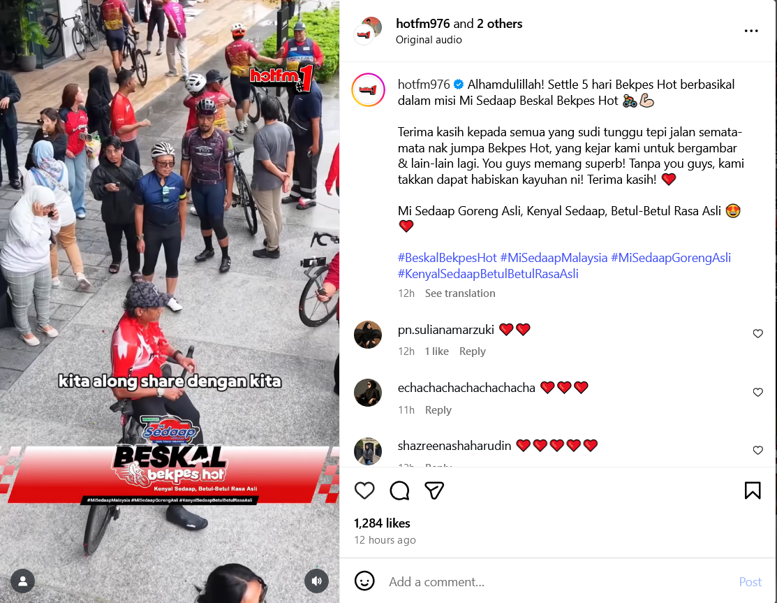Tambahnya, Kempen Mi Sedaap Beskal Bekpes Hot bukan sekadar kayuhan jarak jauh, tetapi simbolik kepada semangat, disiplin dan sokongan komuniti yang menjadi nadi hubungan antara Hot FM dan rakyat Malaysia.