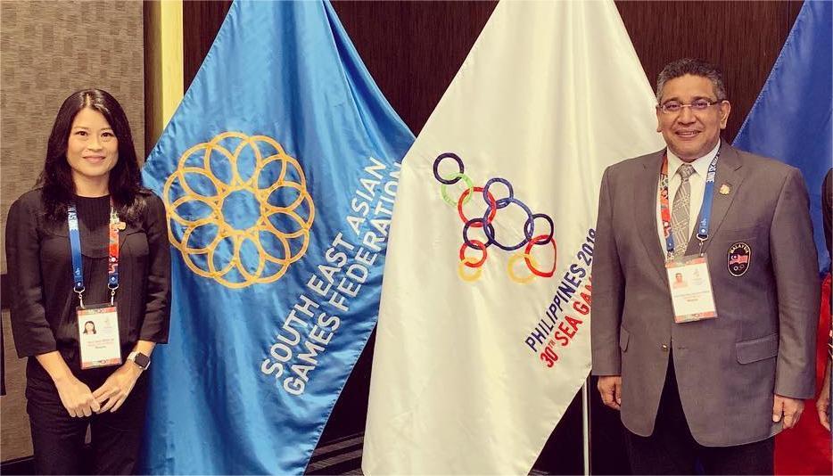NURUL Huda Abdullah (kiri) ketika sebagai Timbalan CDM Sukan SEA Filipina 2019, membantu Megat Zulkarnain Omardin. - Kredit foto: MOM