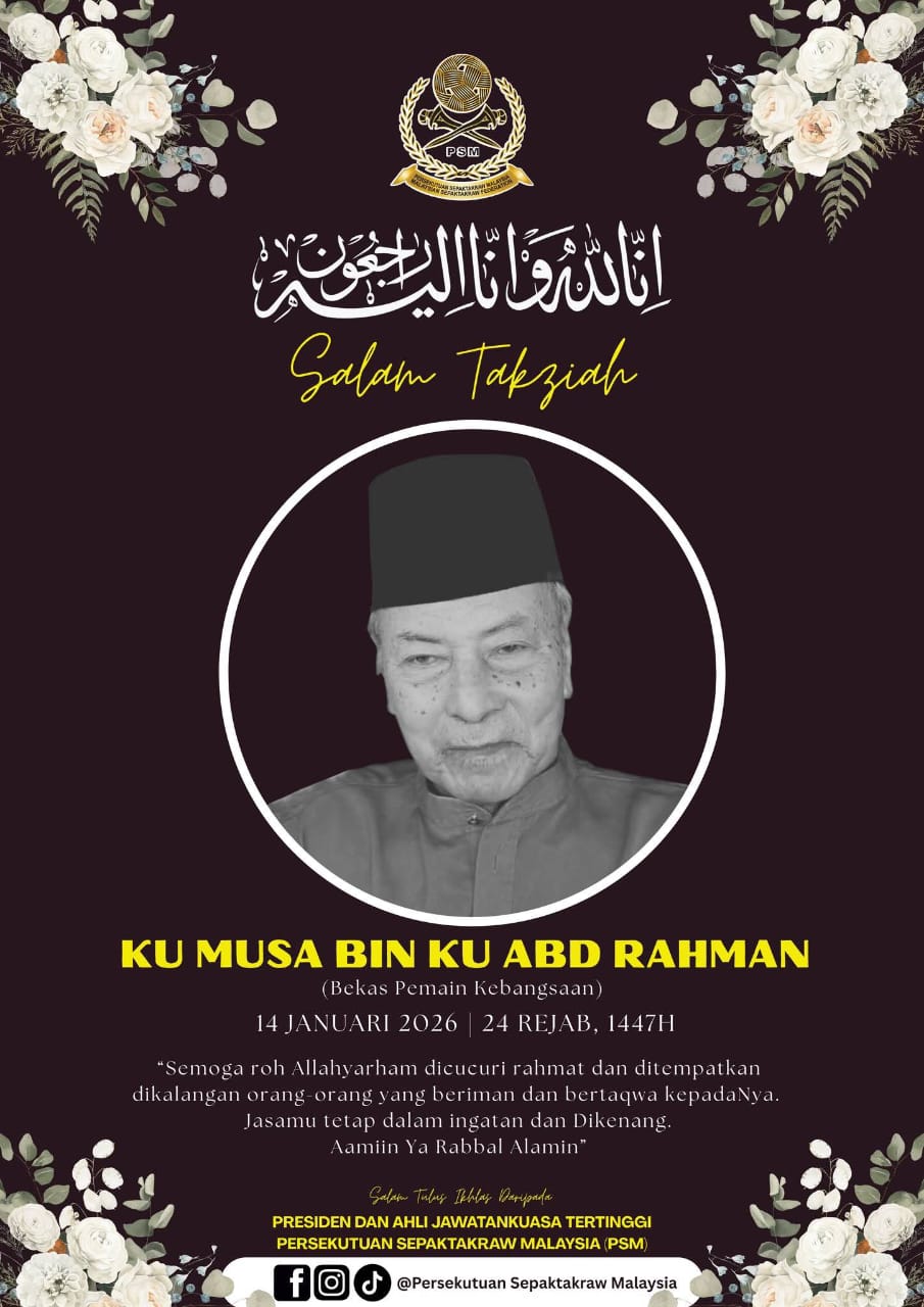 "Jasa dan sumbangan Allahyarham kepada negara akan dikenang dan akan dijadikan sebagai lipatan sejarah sukan sepak takraw," catat PSM menerusi Facebook. - KitaReporters