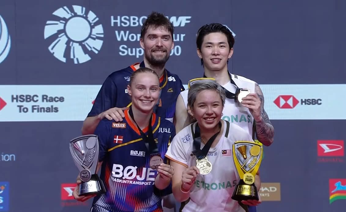 Tang Jie–Ee Wei pula membuktikan status mereka sebagai juara dunia 2025 bukan kebetulan apabila bangkit selepas tewas set pertama untuk menundukkan pasangan Denmark Mathias Christiansen–Alexandra Boje.