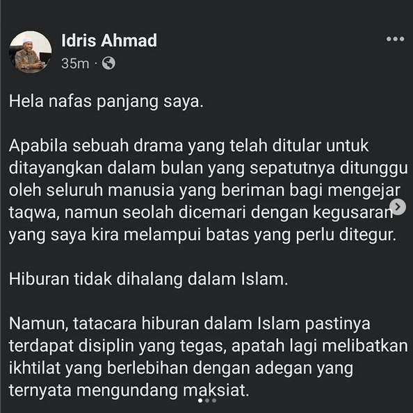 Menerusi entri itu, Ustaz Idris sempat menitipkan nasihat kepada umat Islam untuk bersiap sedia menghadapi bulan Ramadan yang mulia.