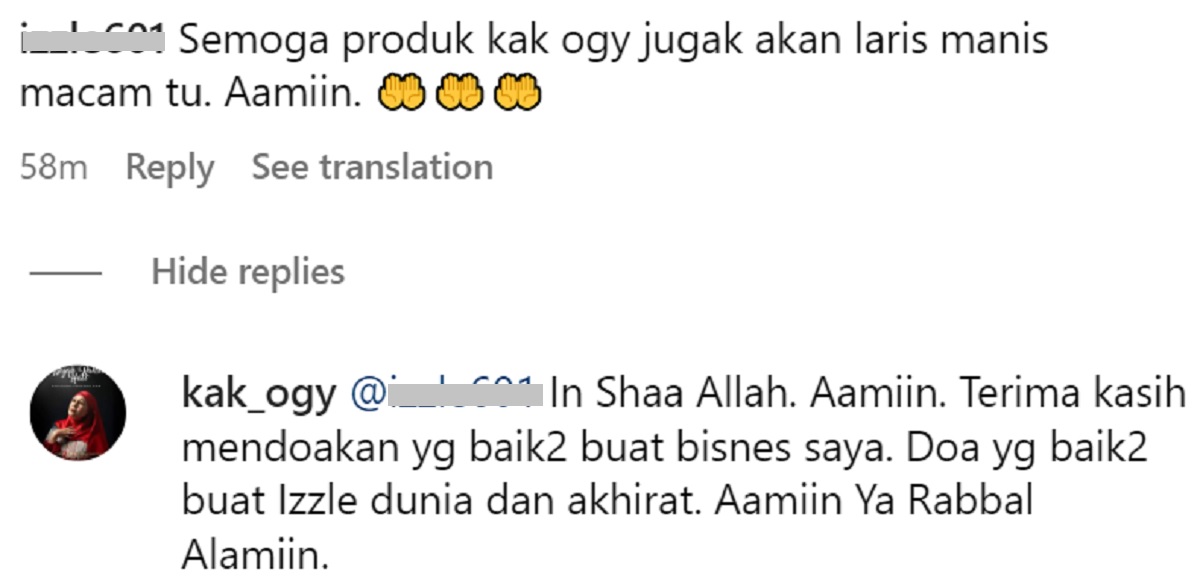 “Semoga produk Kak Ogy juga akan laris manis macam tu. Amin,” tulis salah seorang pengikutnya.