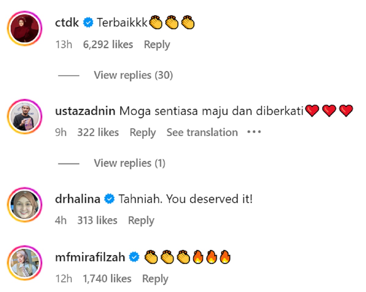 “You inspire me. A great and humble role model. Tahniah encik @khairulaming. Terus maju dan sukses. Kak Ogy doakan Ya. Amat bangga dengan pencapaian en. Khairul. Alhamdulillah,” tulisnya.