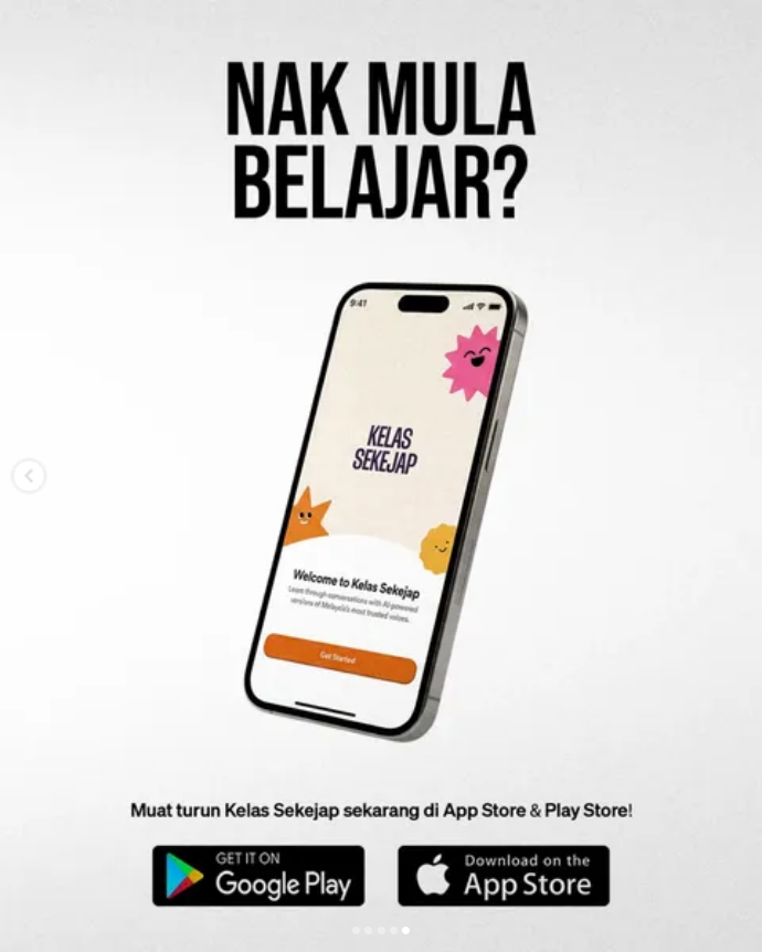 Menurut kenyataan itu lagi, ‘Kelas Sekejap’ menggunakan teknologi AI untuk menyediakan ruang latihan yang selamat dan tanpa tekanan, dengan pelajaran disesuaikan mengikut tahap dan kemajuan setiap pengguna.