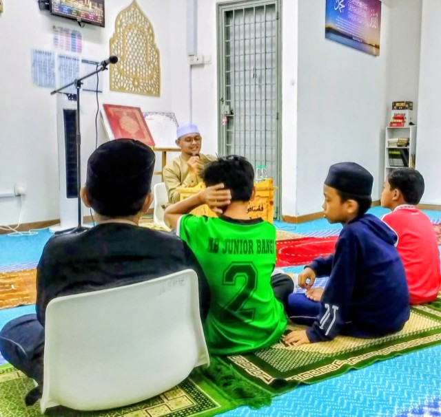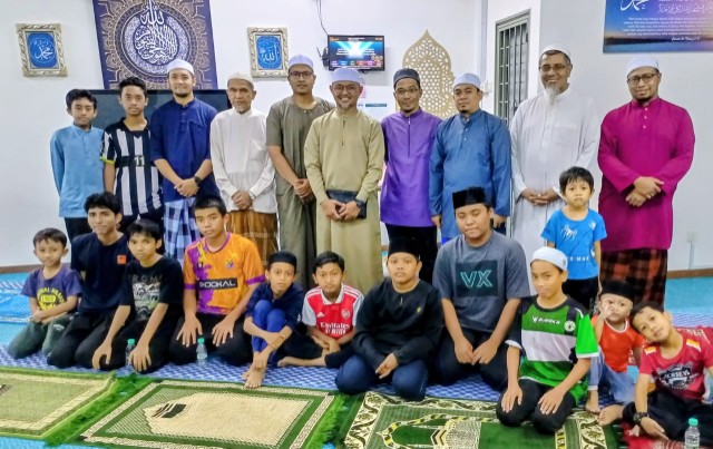 Ustaz Idzhar bergambar kenangan bersama pengurusan Musolla Pangsapuri Anggun.