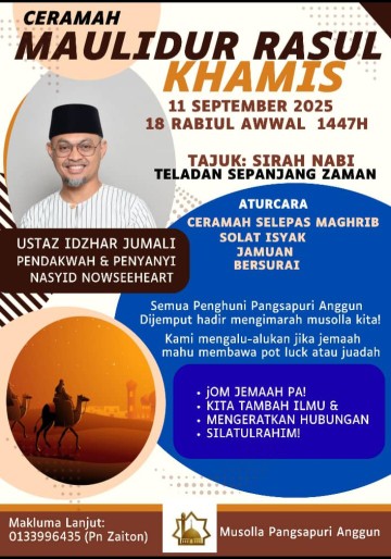 Beliau berkata demikian dalam Ceramah Maulidur Rasul bertajuk Sirah Nabi Muhammad SAW, Teladan Sepanjang Zaman di Musolla Pangsapuri Anggun, Seksyen 4, Bandar Baru Bangi, Selangor.