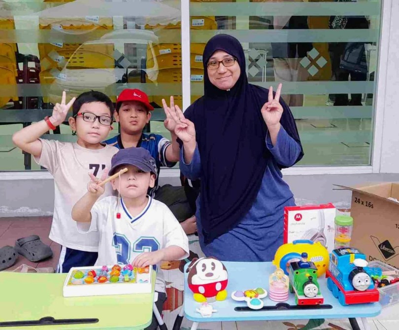 Ibu ini membawa anak-anaknya dan pelbagai mainan untuk diberikan secara percuma sempena Free Market BBBC.