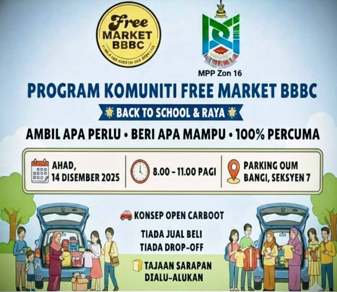Itulah yang cuba dibuktikan oleh Sukarelawan Free Market Bandar Baru Bangi Community (BBBC) melalui penganjuran program komuniti Free Market BBBC - Back To School & Raya pada Ahad, 14 Disember 2025 ini.