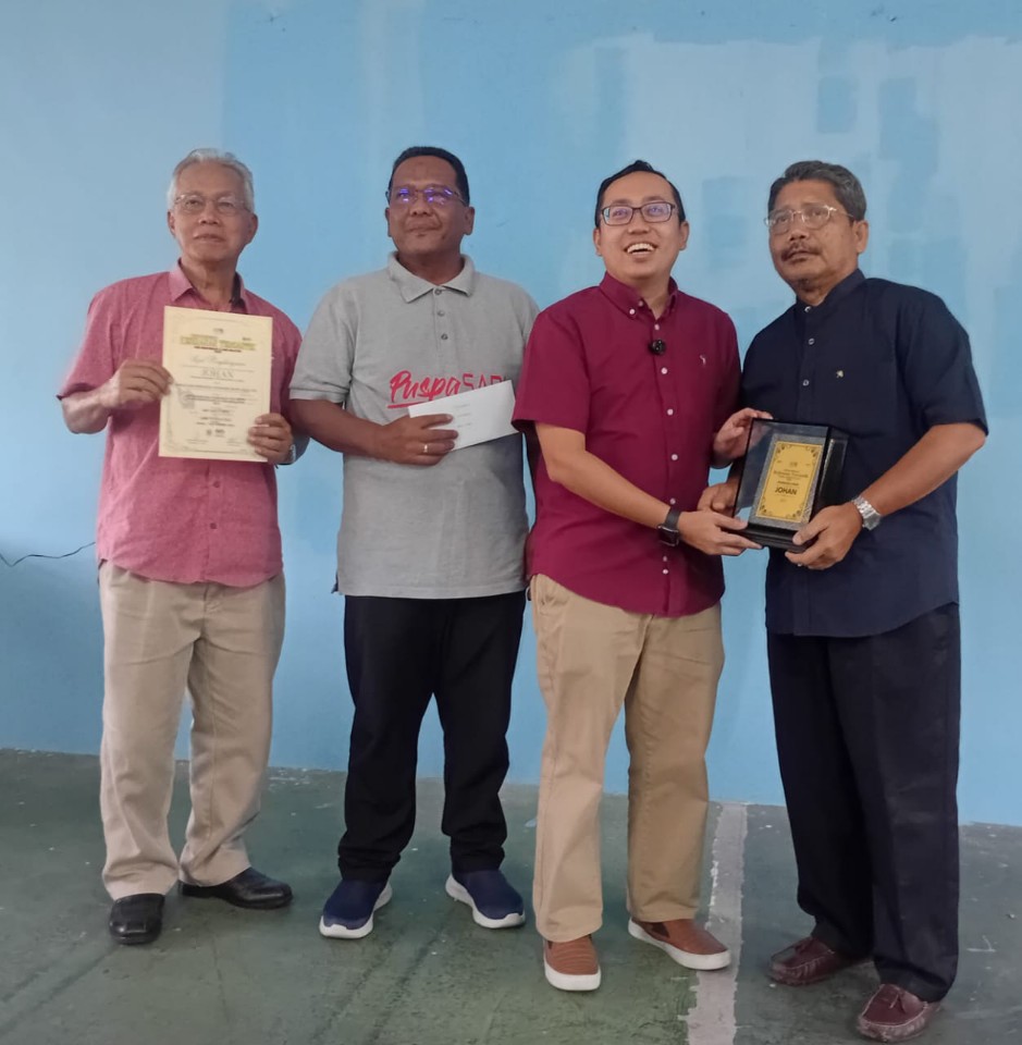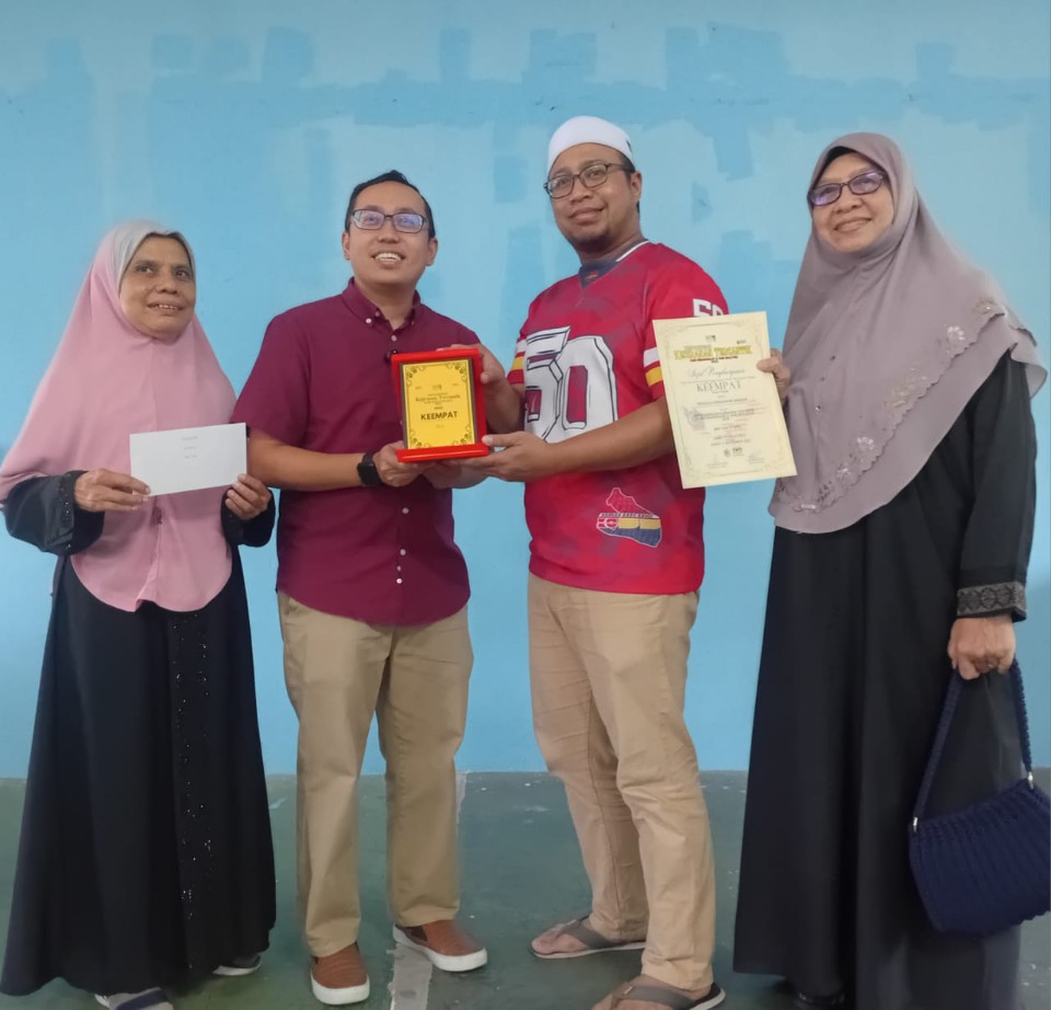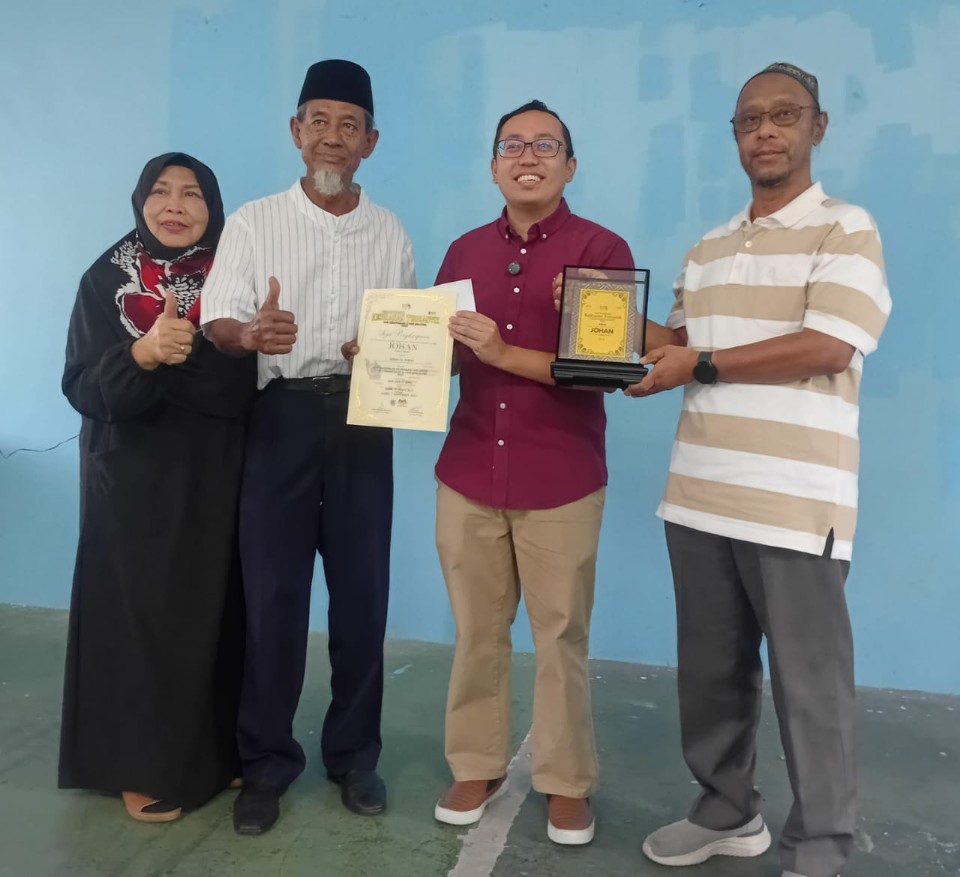 Ustaz Ahmad Umar Asyraf (dua dari kanan) menerima hadiah tempat keempat kategori Surau daripada Farhan.