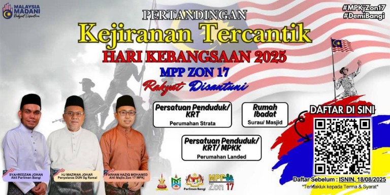 "Melalui pertandingan itu, memang terasa kemeriahannya apabila setiap komuniti, kejiranan dan surau di MPP Zon 17 mengibar Jalur Gemilang dan aktiviti-aktiviti hari kebangsaan dengan penuh semangat patriotisme," katanya selepas majlis penyampaian hadiah kepada pemenang di Dewan Komuniti, Seksyen 7, Bandar Baru Bangi, Selangor.