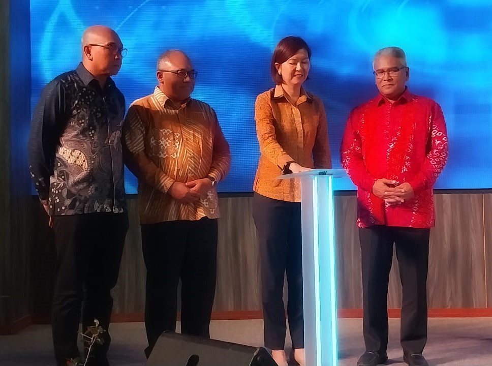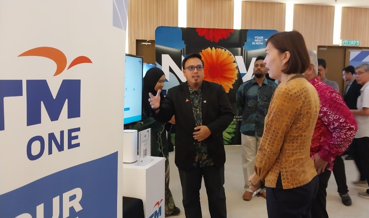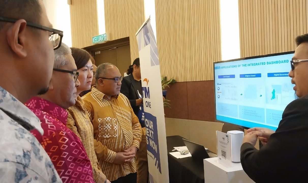Sandrea Ng Shy Ching (dua, kanan) dan Speaker DUN Perak Datuk Mohd Zahir Mohd Khalid (kanan) sednag mendengar penerangan mengenai Bandar Pintar Taiping 2030 di Taiping