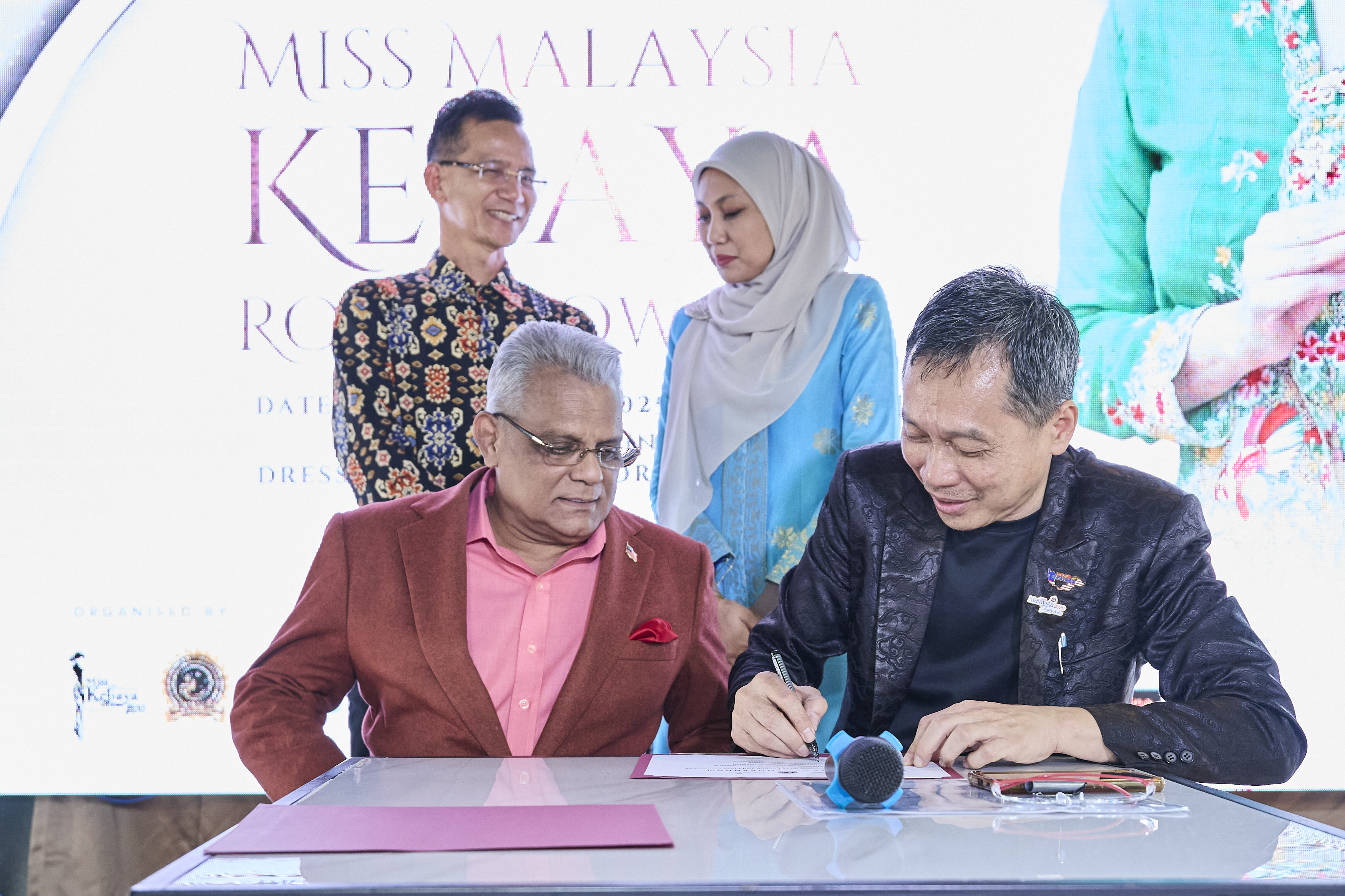 Dr Jason Hee menandatangani Mou dengan Tan Sri Dr M Kayveas menaja bersama Miss Malaysia Kebaya 2025.