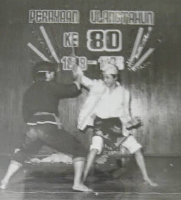 PENULIS (kanan) membawa watak Hang Jebat dalam pementasan drama di sekolah.
