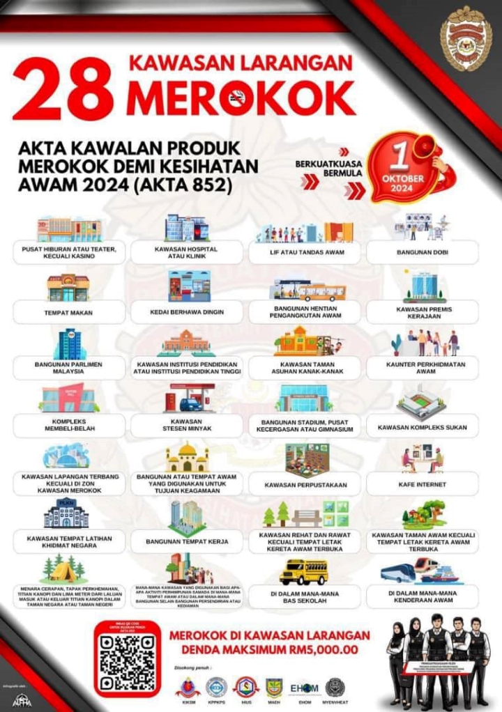 Tetapi jika tetap ingin merokok dan membahayakan diri sendiri, jangan ancam kesihatan orang di sekeliling yang tidak berdosa. Elak merokok di tempat dilarang.