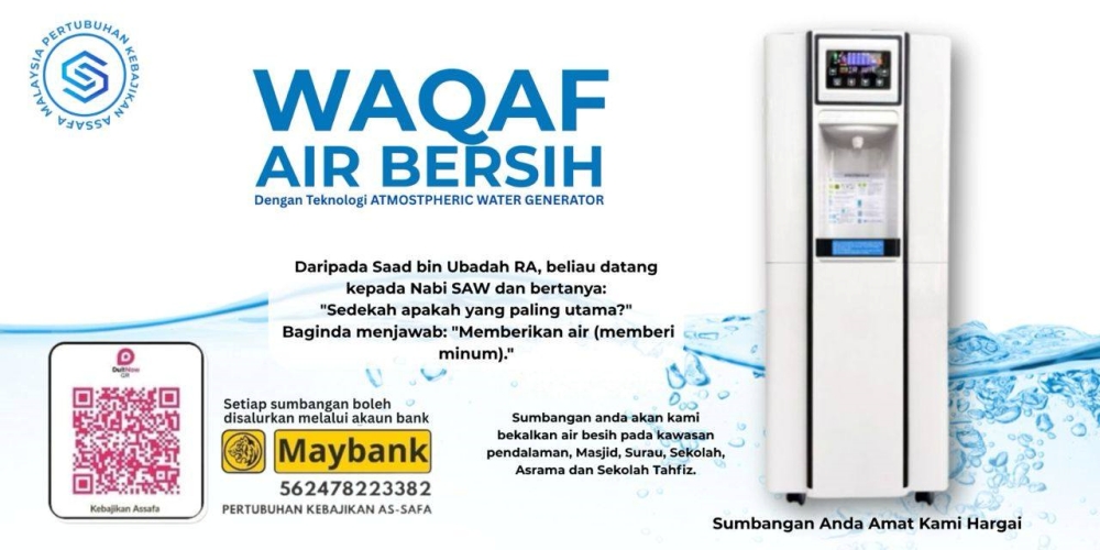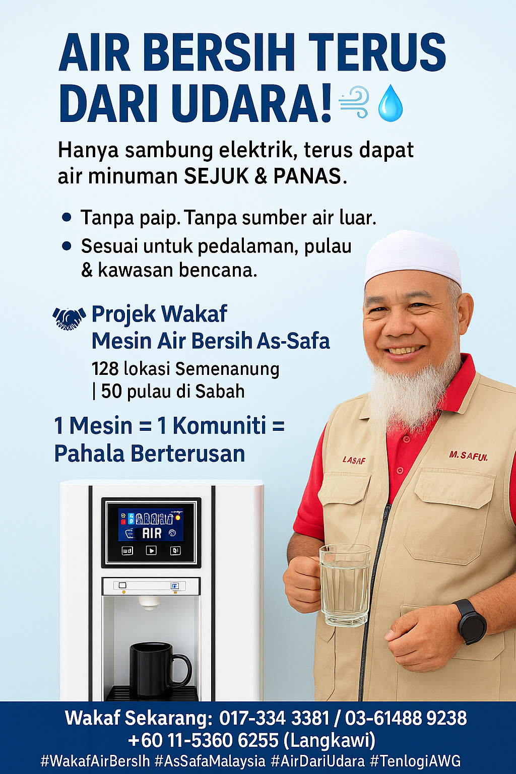 Satu inovasi luar biasa kini membuka harapan baharu kepada komuniti yang berdepan masalah kekurangan atau ketiadaan bekalan air apabila Pertubuhan Kebajikan As-Safa Malaysia memperkenal mesin penjana air bersih berasaskan udara, tanpa memerlukan paip atau sumber air luar.