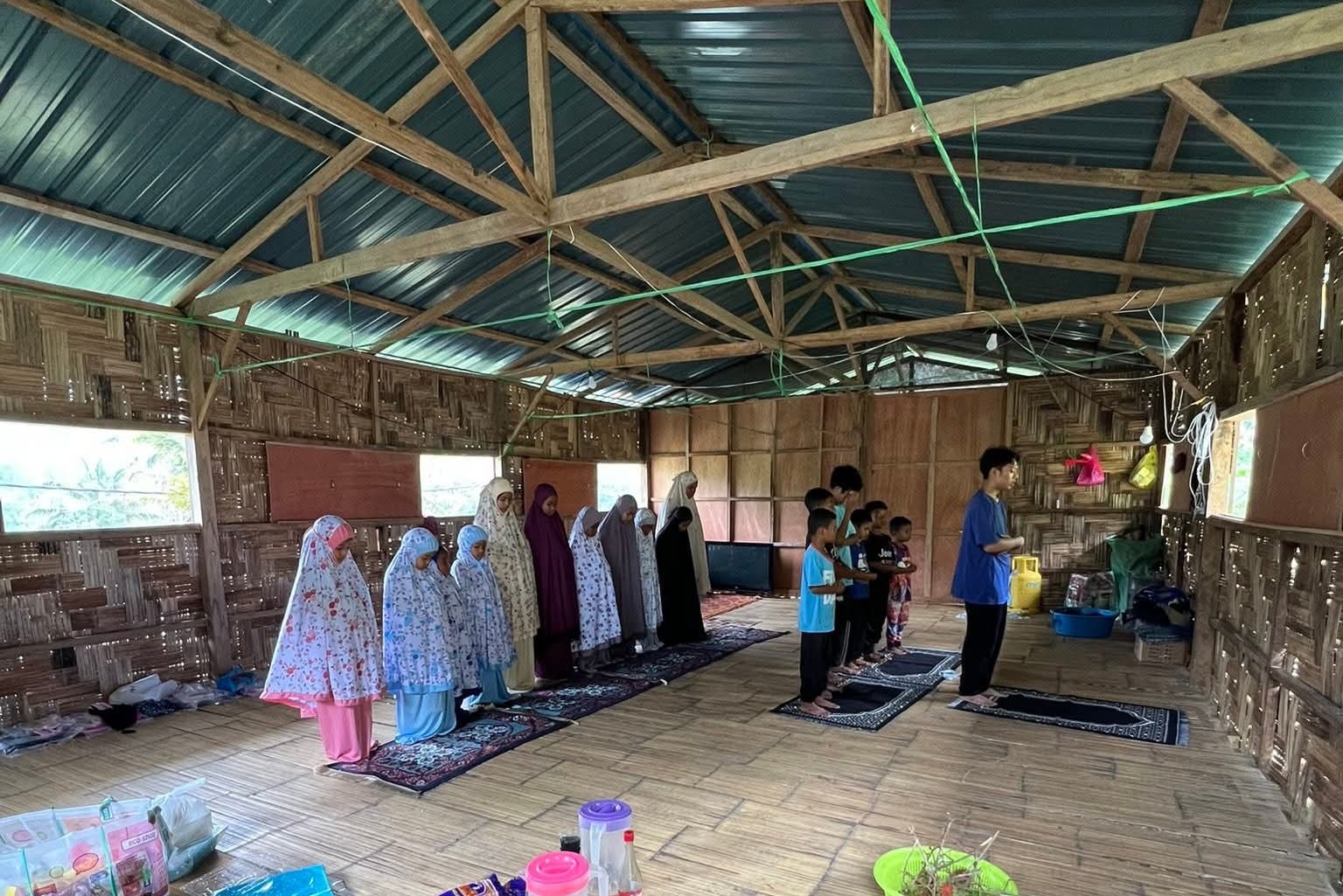 Sebahagian anak Orang Asli menunaikan solat berjemaah pada program itu.