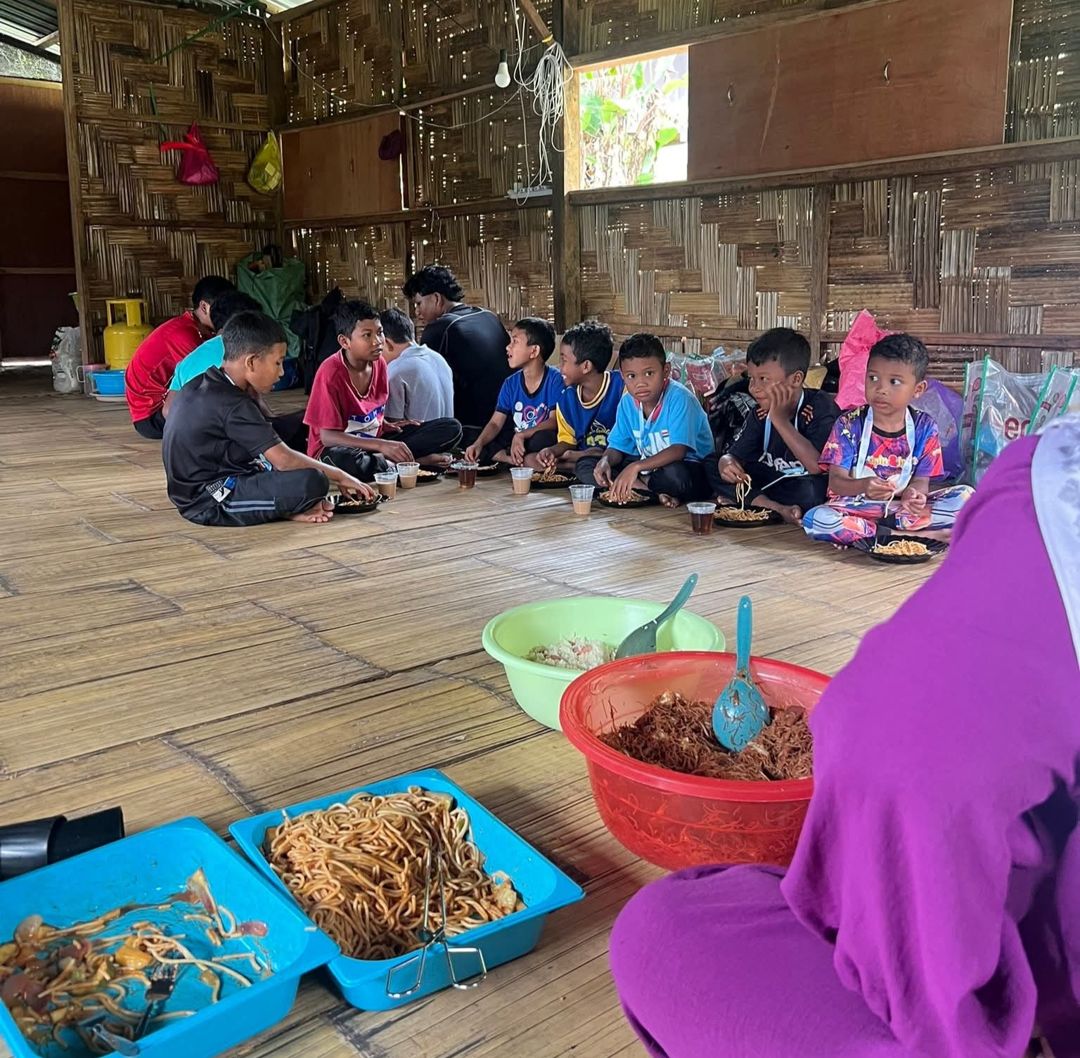 Anak Orang Asli menikmati hidangan yang disediakan ibu mereka dan aktivis masyarakat.
