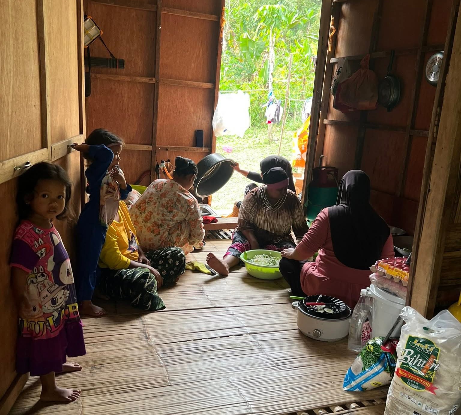 Aktivis menyiapkan hidangan untuk dimakan bersama-sama penduduk dan anak Orang Asli.