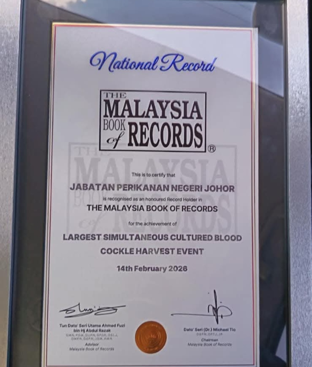 Projek ini turut melakar sejarah tersendiri apabila tuaian serentak di kesemua lot ternakan diiktiraf oleh Malaysia Book of Records (MBOR) sebagai Acara Terbesar Tuaian Serentak Kerang Darah atau Largest Simultaneous Cultured Blood Cockle Harvest Event.
